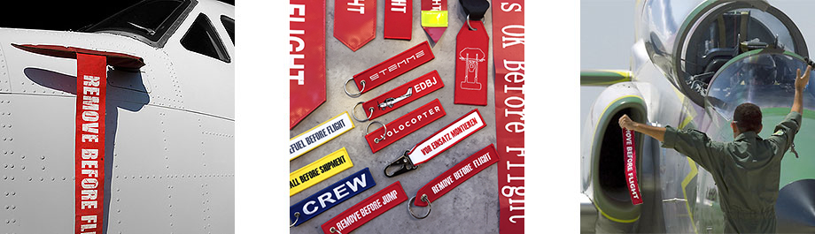 Flugzeug-Safety-Tags oder auch "Warning Steamer" sind Anhänger, die an Flugzeugen, Helikoptern und UAV/UAS (Drohnen) hängen. Sie markieren Abdeckungen oder Komponenten, die vor dem Flug entfernt werden müssen. Daher nennt man sie auch "Remove Before Flight"-Anhänger.