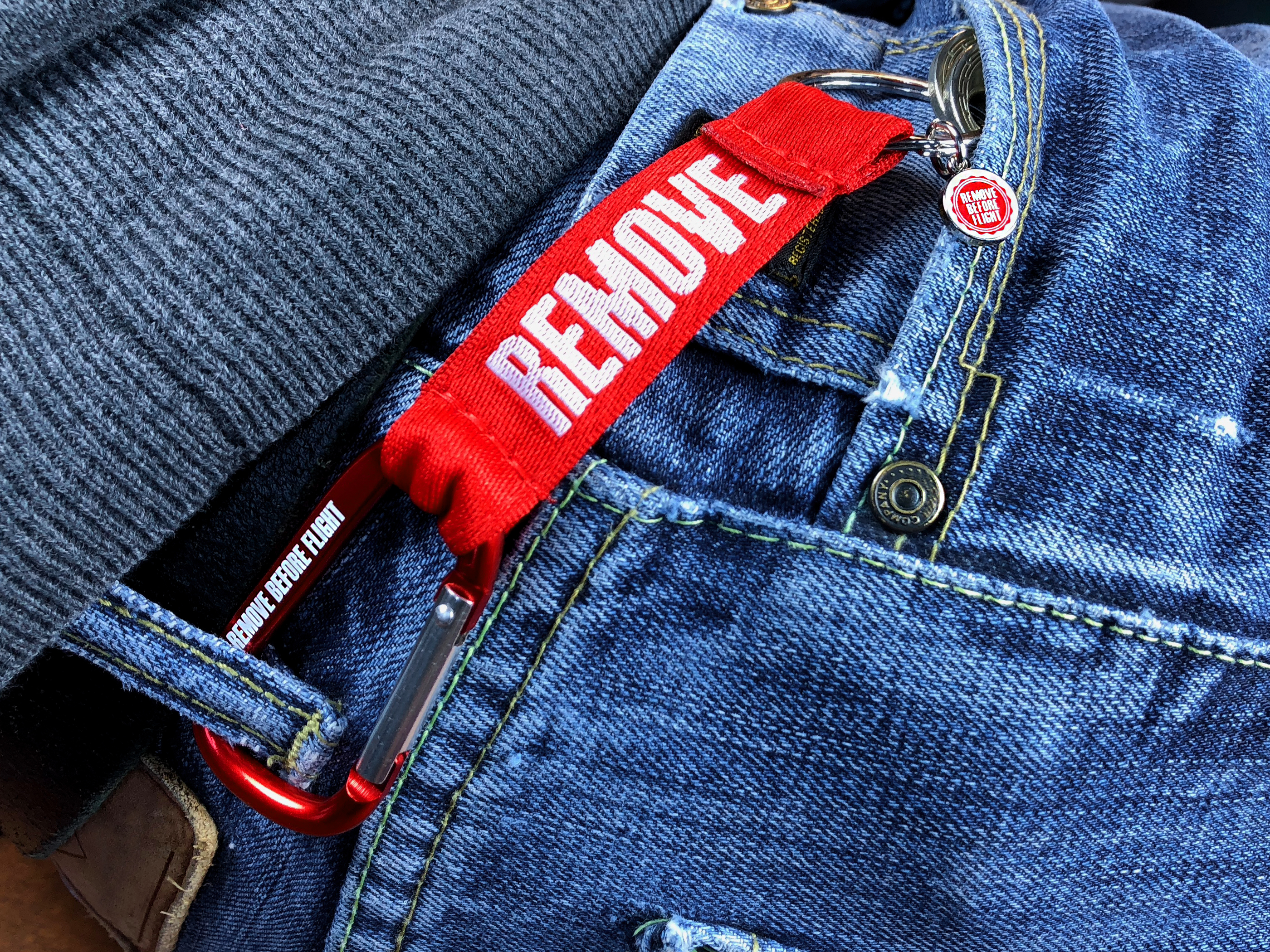 1 Schlüsselanhänger-Strap mit "Remove Before Flight"-Karabiner.